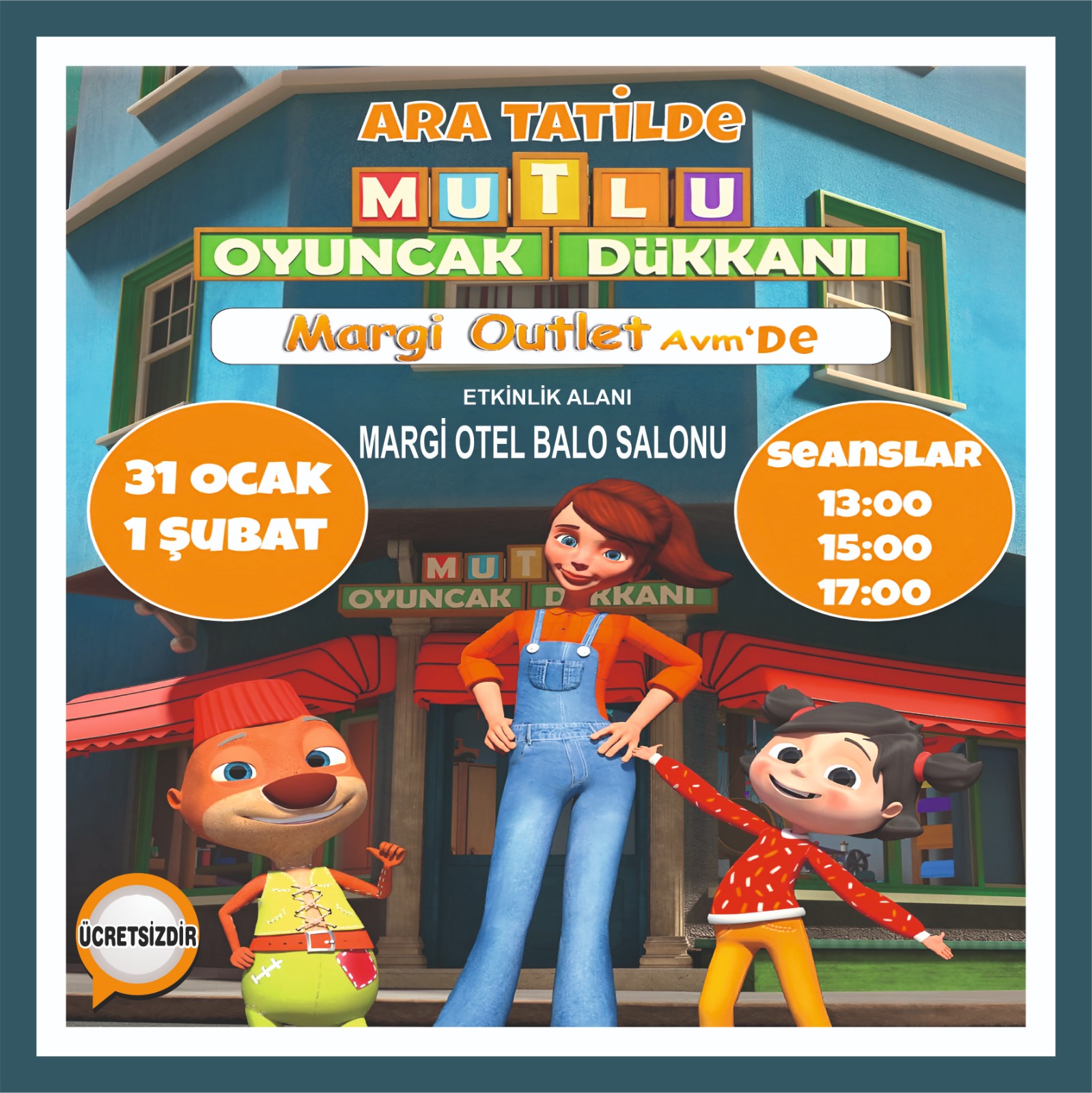 31 OCAK CUMARTESİ 1 ŞUBAT PAZAR SEANSLAR: 13:00 - 15:00 - 17:00 ETKİNLİK ALANI: MARGİ OTEL BALO SALONU Devamını Oku